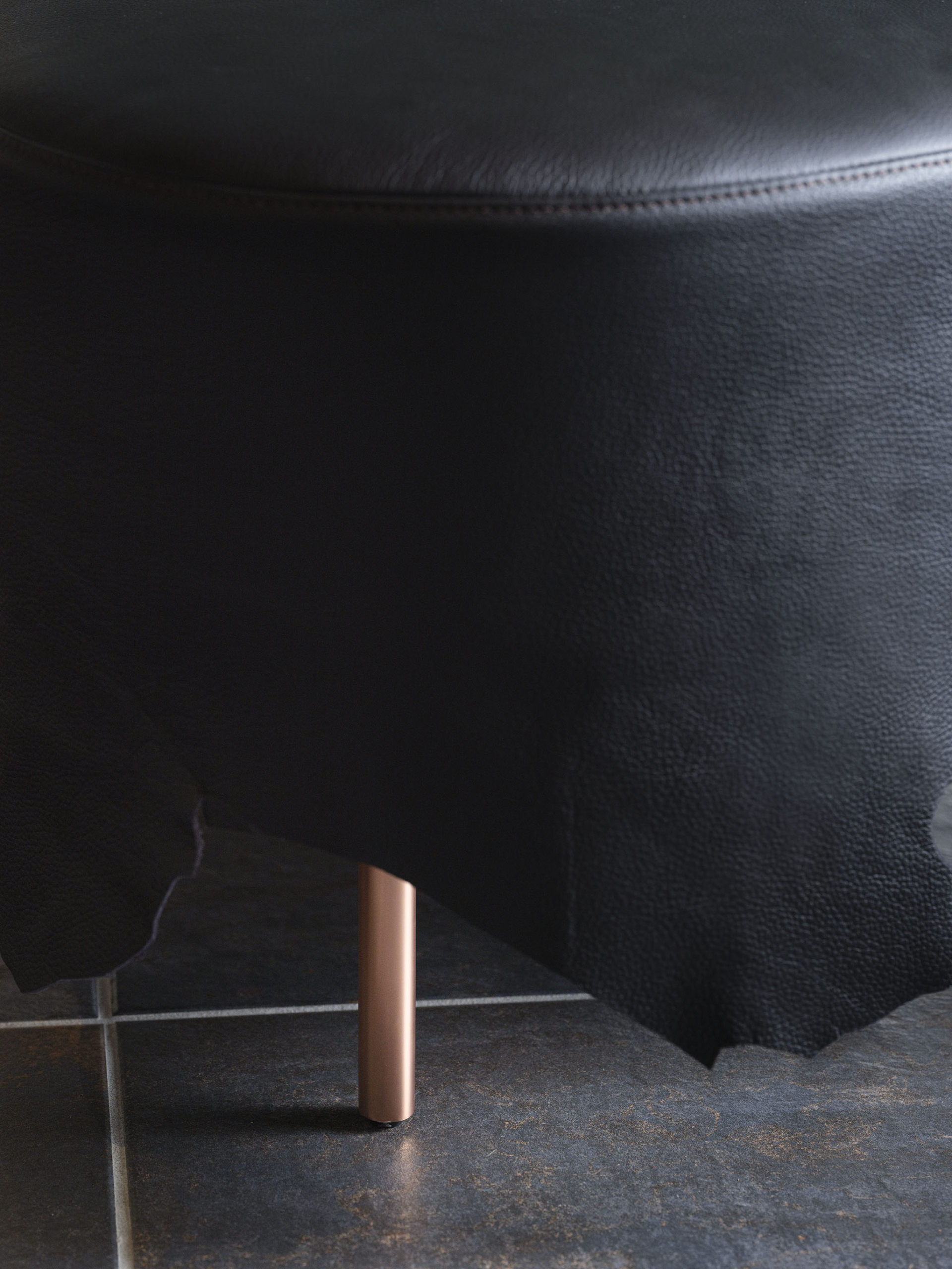 革の輪郭や傷は不均質の素材としてネガティブに捉えられ、製造過程で廃棄されてしまいます。しかし、この不均質さこそが、素材それぞれの個性であり、本来の魅力であるといえるでしょう。そこで、イヨベ工芸社の卓越した技術力を最大限に生かし、この廃棄部分を積極的に採用することで、一つ一つが個性的な魅力を持つ家具としてデザインしました。