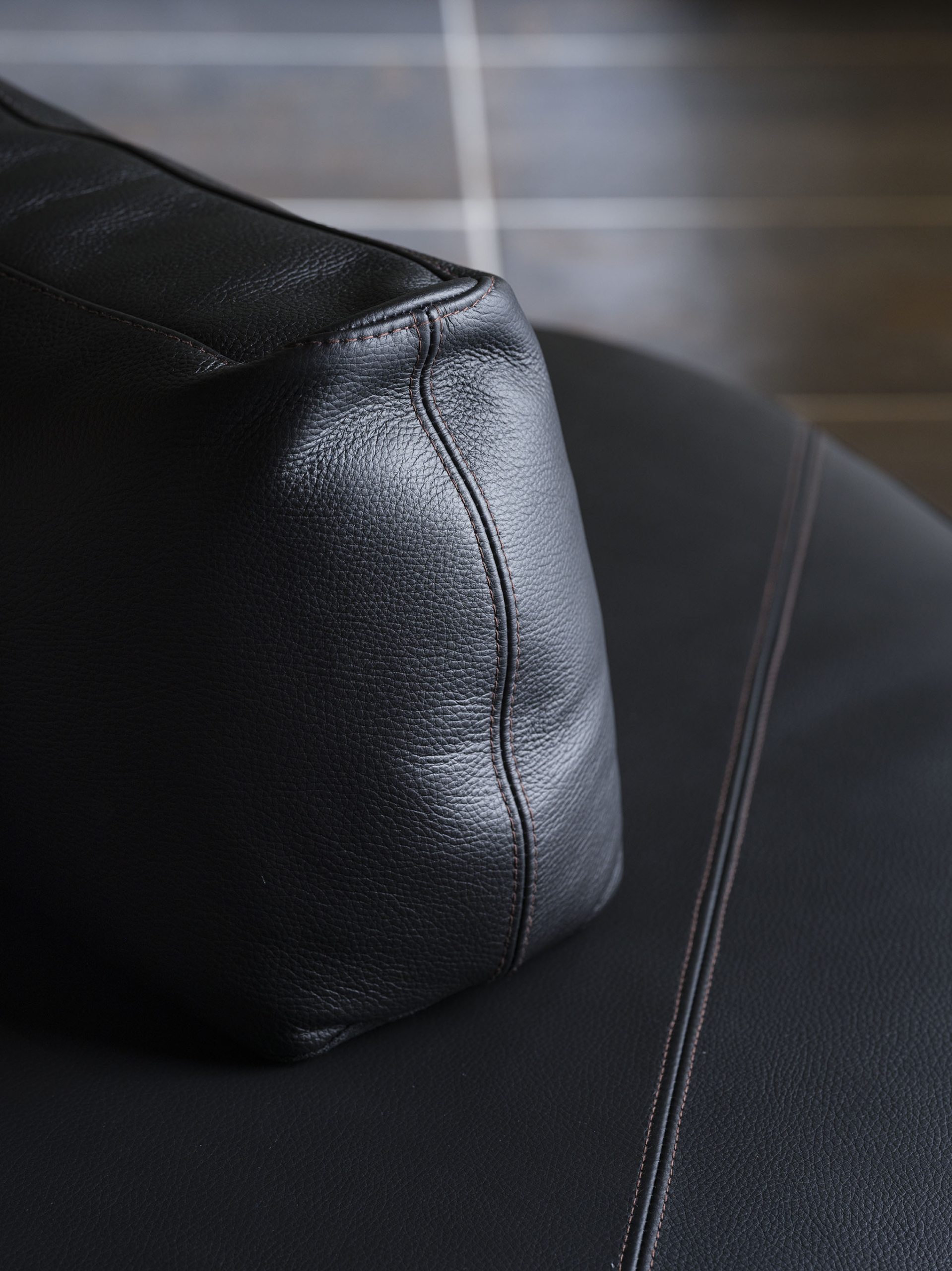 開発過程では、「ワイルドエッジ」と名付けた革の輪郭線の個性を残しつつも、安定した商品としてどのように仕上げていくのかが課題となりました。「ワイルドエッジ」を家具の側面に生かす構成とすることで、個性豊かな佇まいと、高級感ある座り心地を実現しました。また、多角形の座面形状と可動ひじ掛けを採用し、様々な用途に対応する家具を目指しています。